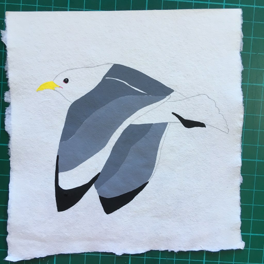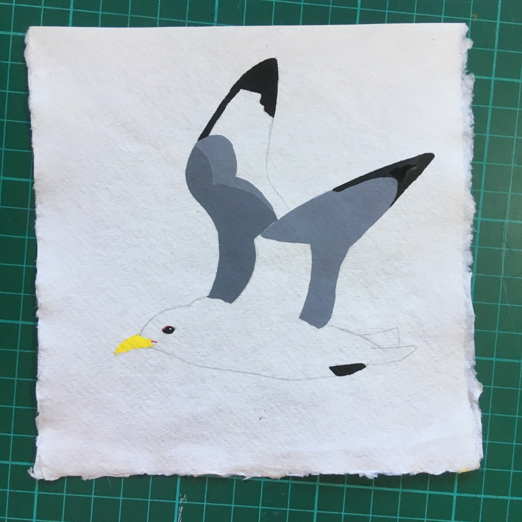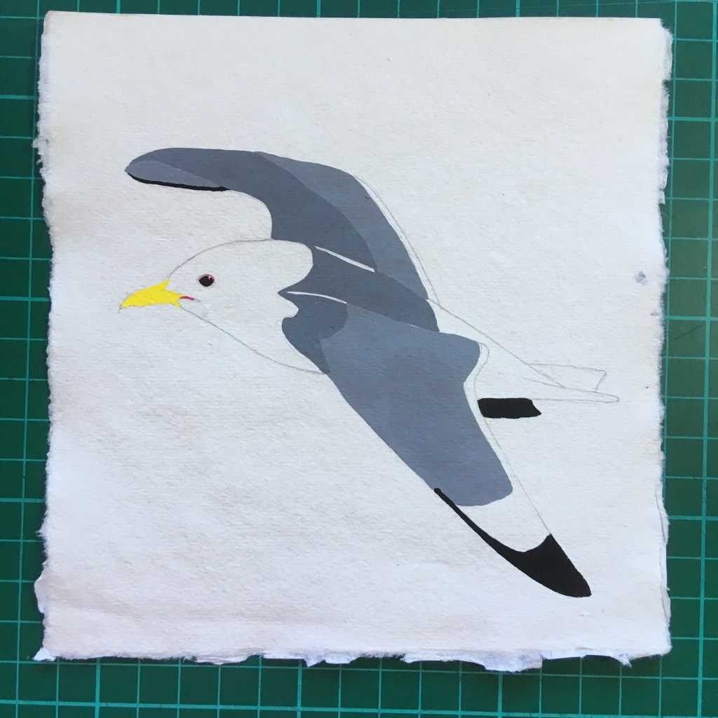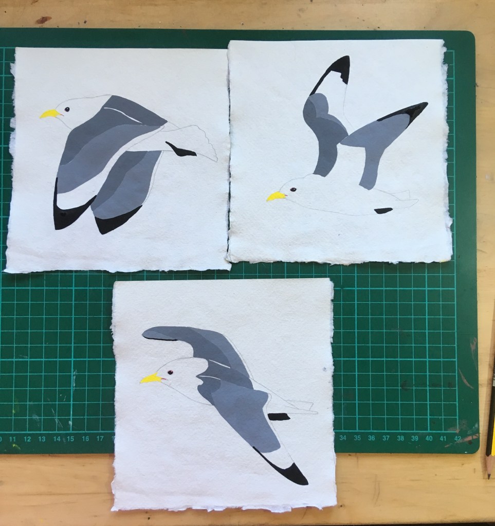 I am really enjoying the flying bird/Khadi paper/triptych paintings I have been doing. I visited my daughter in Newcastle recently and there is a large Kittiwake colony in the city, and it was fantastic to see the birds being welcomed and protected despite the no-doubt negative impact (pardon pun!) of copious quantities of guano inflicted upon the buildings and infrastructure: