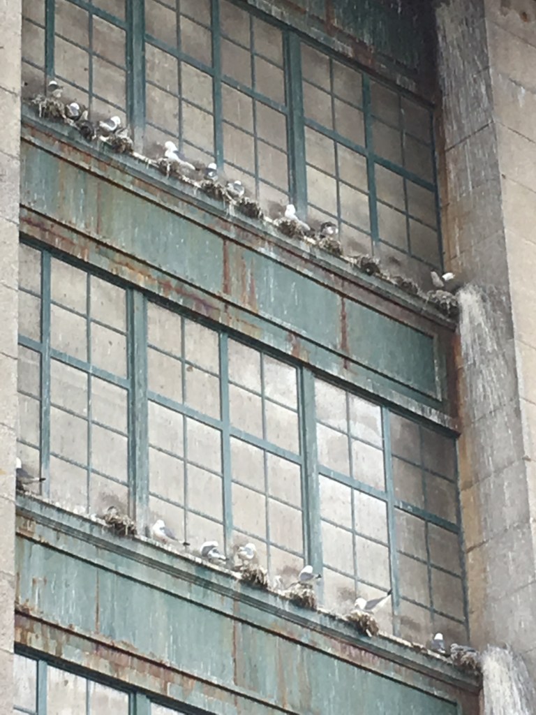 The birds are unfazed by their human viewers and were perched with chicks of various ages along the ledge at the Centre. It was wonderful to see them so close and watch them launch off the side of the building, even though the precipitous environment that the chicks were bumbling around on gave me, as someone with absolutely no head for heights, a bad case of the heebie-jeebies…
