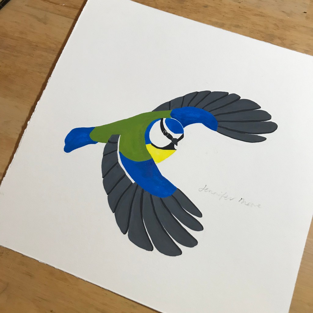 It’s a difficult time to be creative, as on the one hand I finally have some time to pursue some artsy pursuits, but my mind is rather foggy and preoccupied; not the best environment for fomenting ideas. However, I cleaned my house (well, the bits that matter) yesterday and I finished the Blue Tit I have had languishing in my box of drawings for about 6 months: