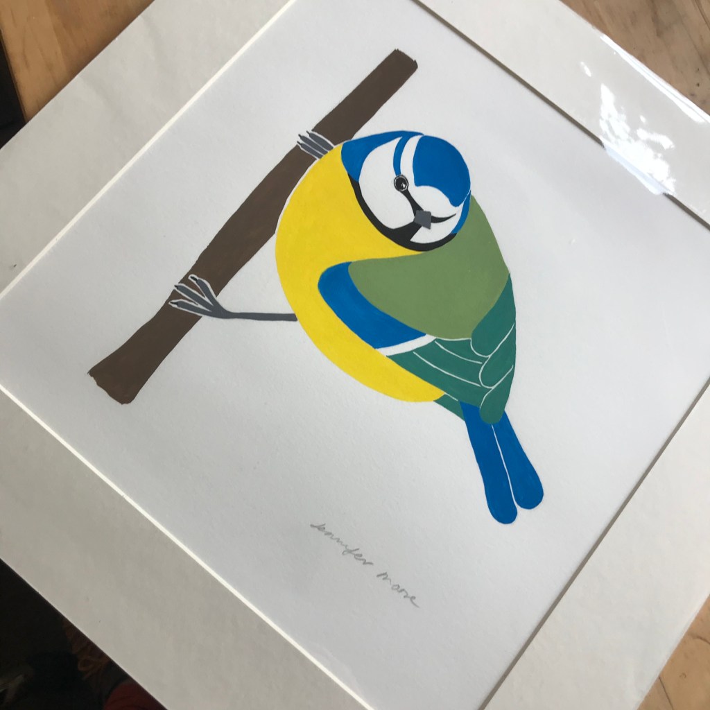 I paint the birds in gouache on printing paper, which is really unforgiving but I was given a massive roll of it by Jealous Gallery when I was just starting out and I am used to painting on it, so it worked perfectly with the printing ink. I have done a number of mono prints in the past so have the rollers and ink, and use old shelves from a fridge to load the roller. I am going to do a more scenic one next involving lapwings.