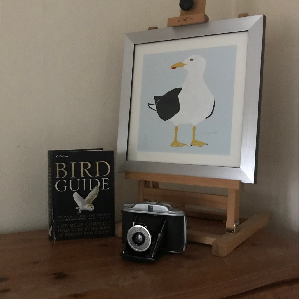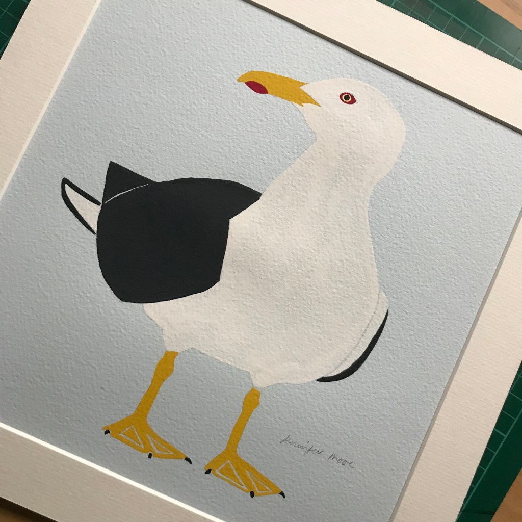 Gulls are quite difficult to paint in my style as they have a lot of white, so I bought some pale blue watercolour paper to use. Herring Gulls are always popular but I do like to champion the less familiar species, and often, in painting them, I learn the diagnostic markings or features that mean I learn more about the bird.
