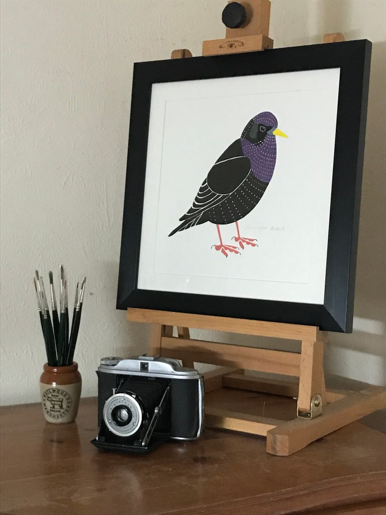 Painting a Starling was a bit of a challenge as I am always wary of trying to recreate spotty plumage. The winter coat of a Starling is a glorious thing: iridescent purple-green-black and covered in creamy-white spots, but I like dividing the bird up like a puzzle and Starlings do not lend themselves to that technique.