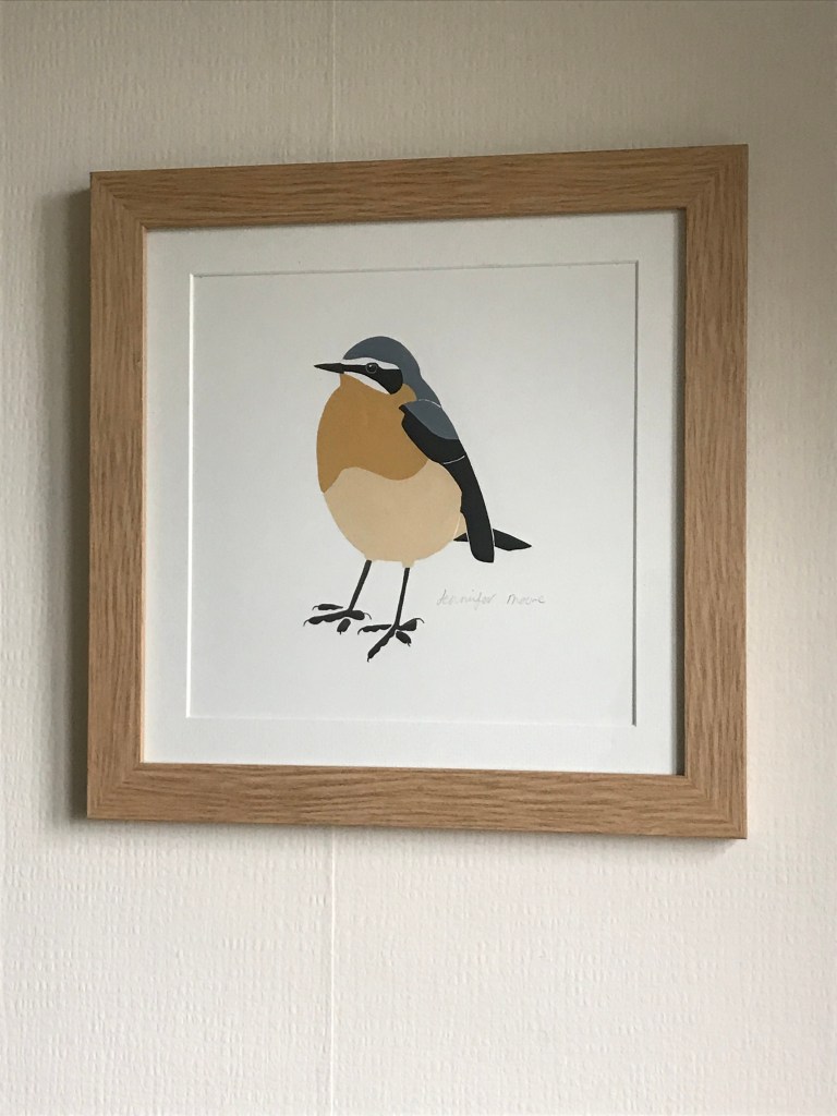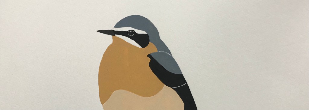 The wheatear I have painted is a male in his breeding finery, although his white rump can’t be seen from this angle!