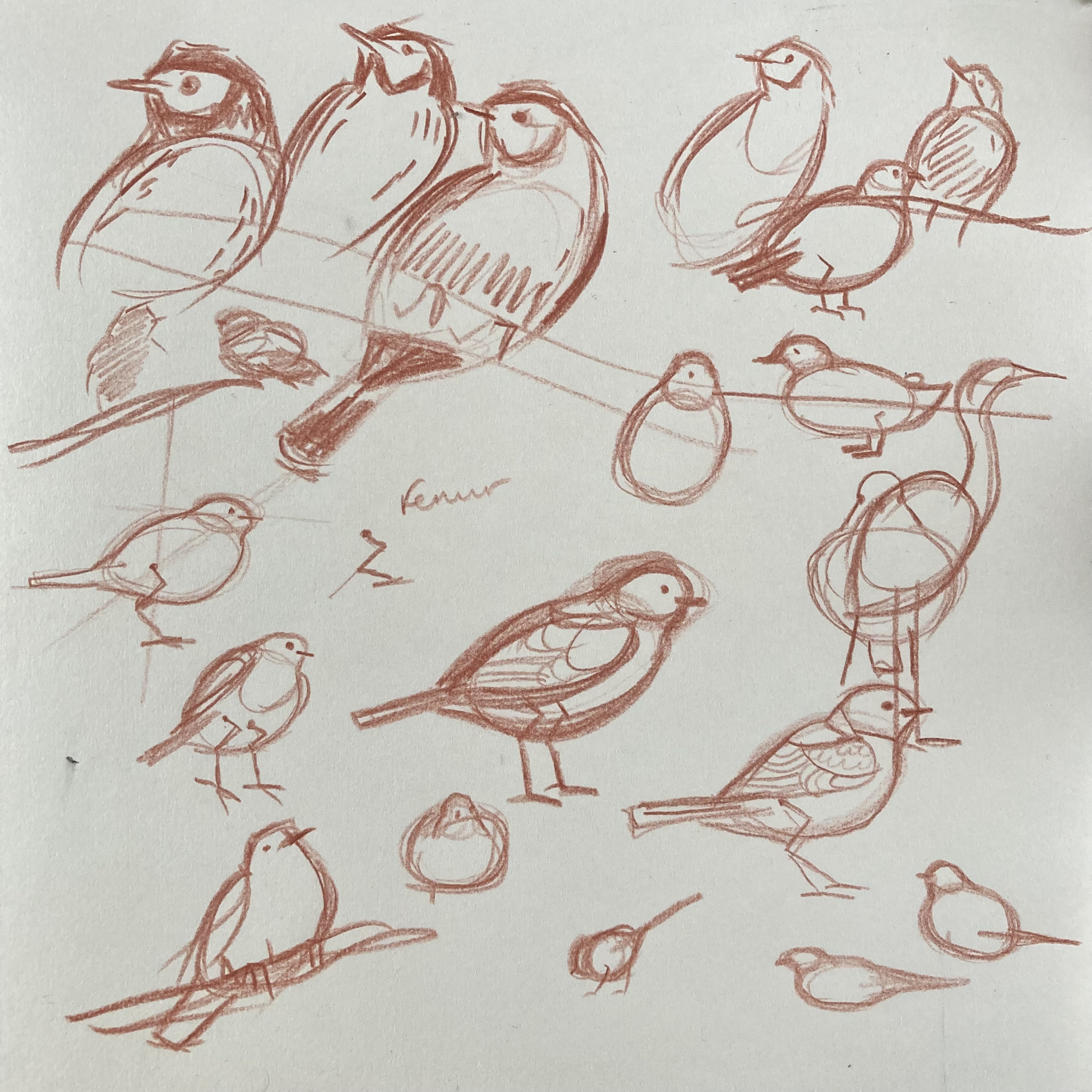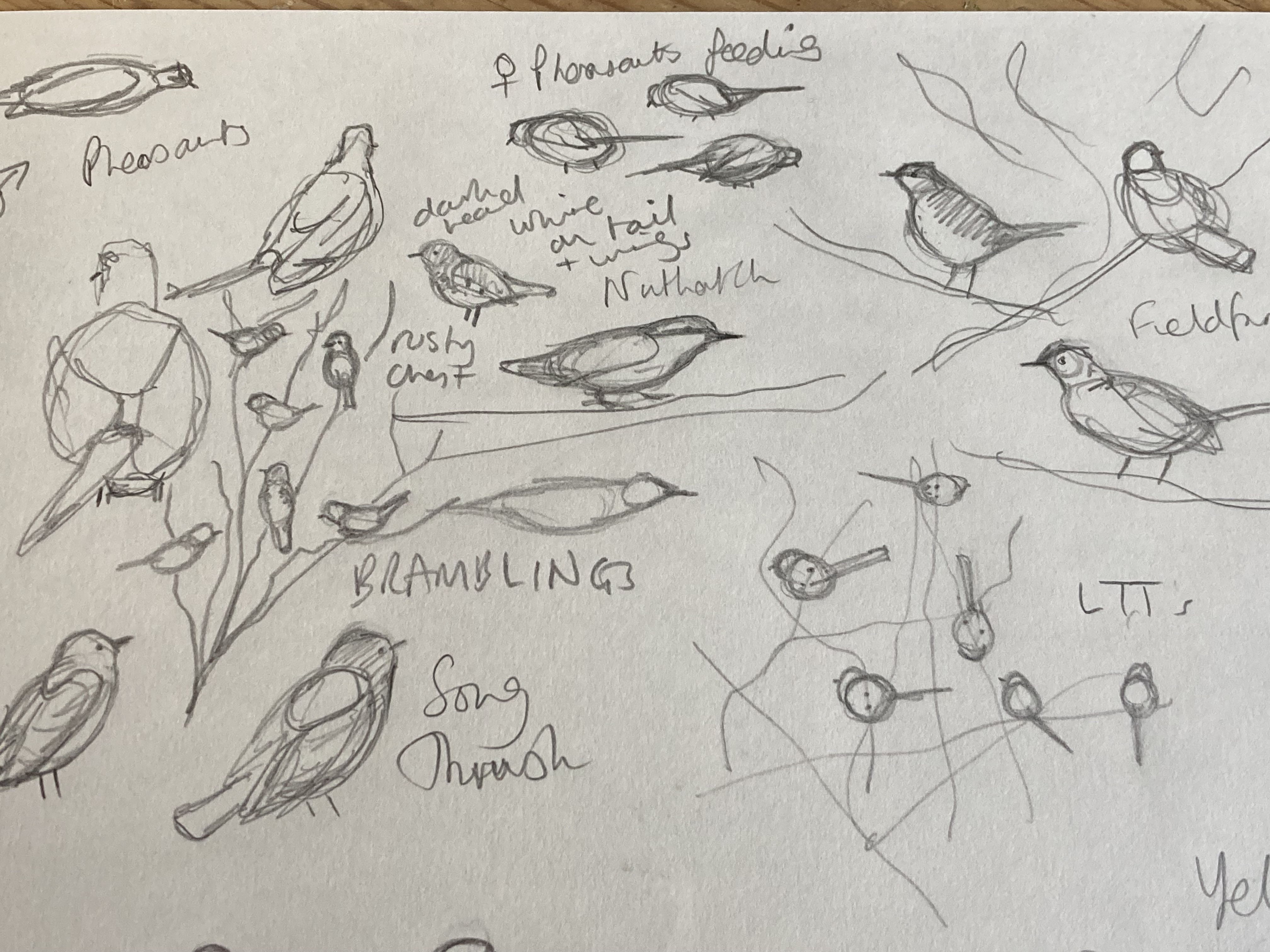 Part of my practise as an artist is field sketching. It is something I have only recently rediscovered since drawing the illustrations for the birdwatching logbooks. Prior to this, my paintings were slightly abstracted and simplified, and deliberately flattened to match the matte gouache paint. Consequently, I have revisited my field sketching, as it is a great way to ensure that drawings and paintings have the correct feel and sense of movement, even if reference photos are used for the final illustration.