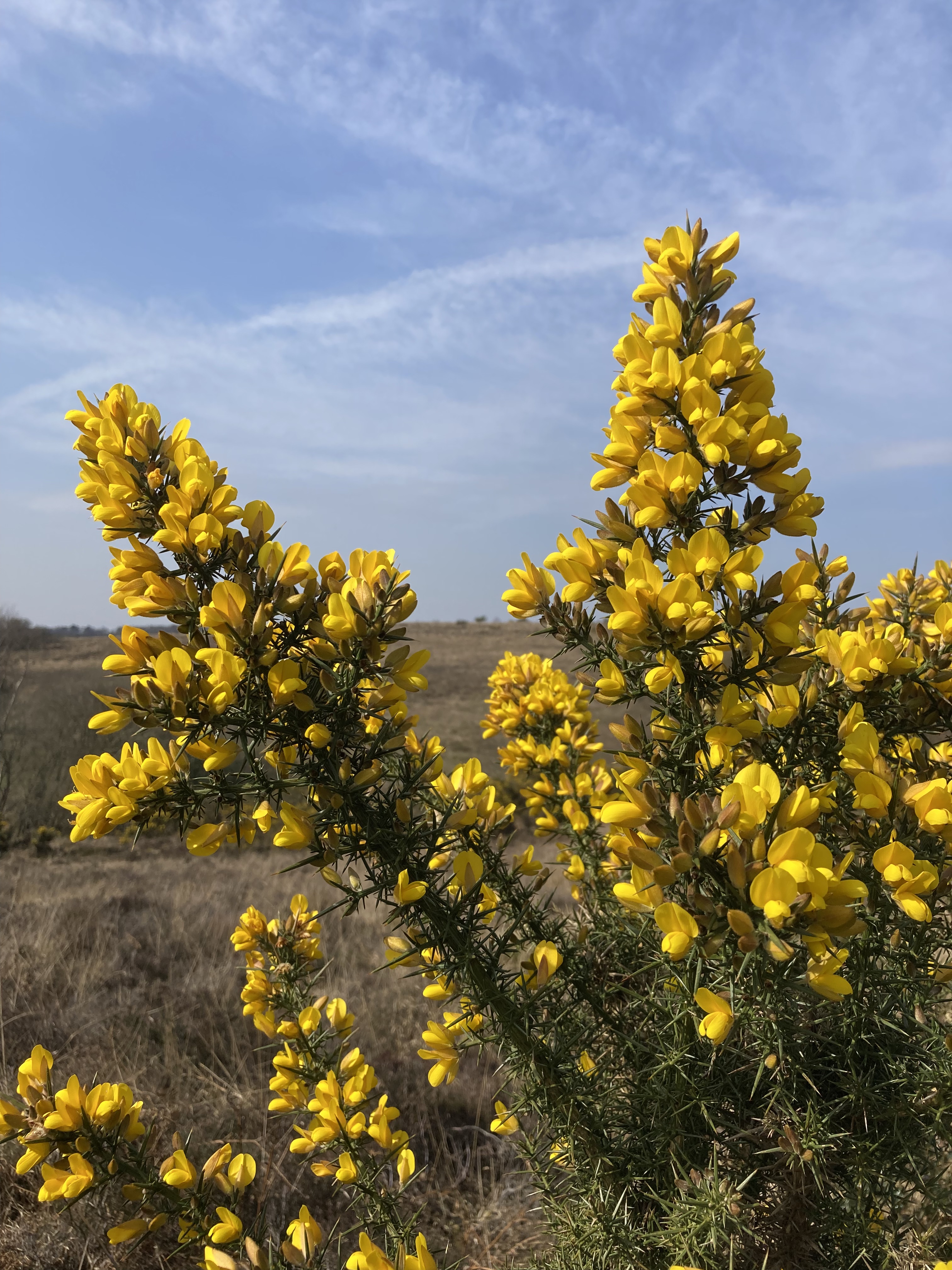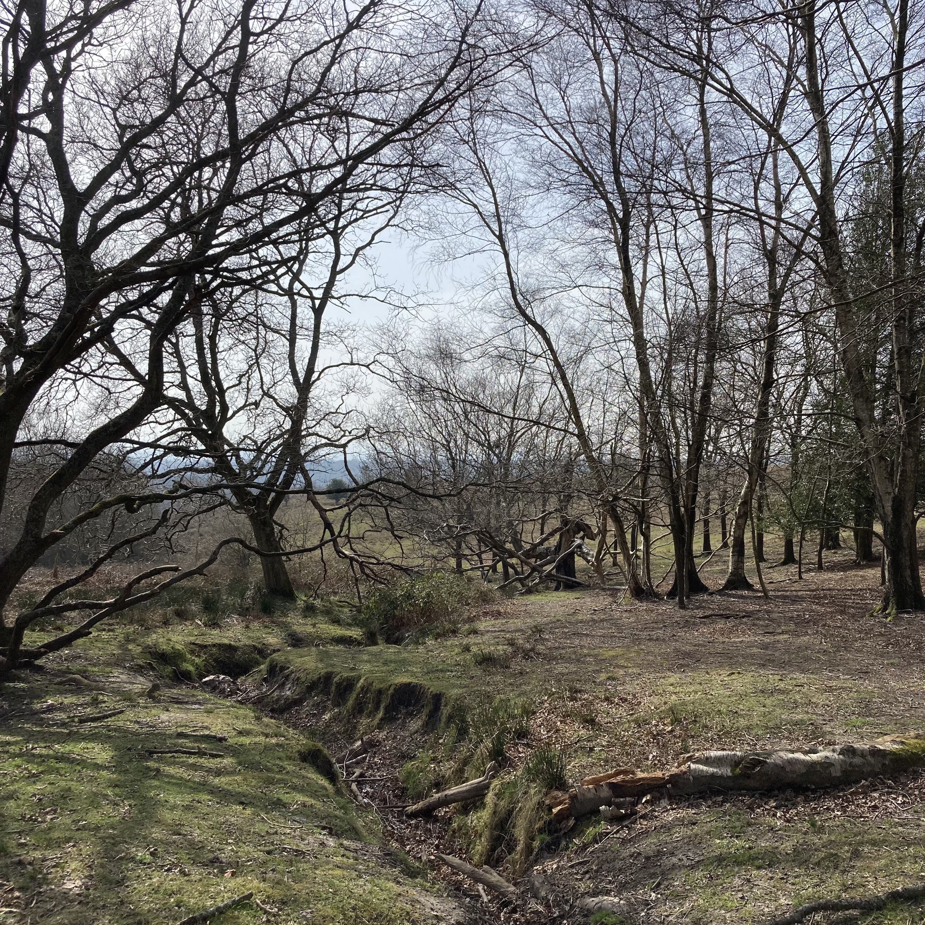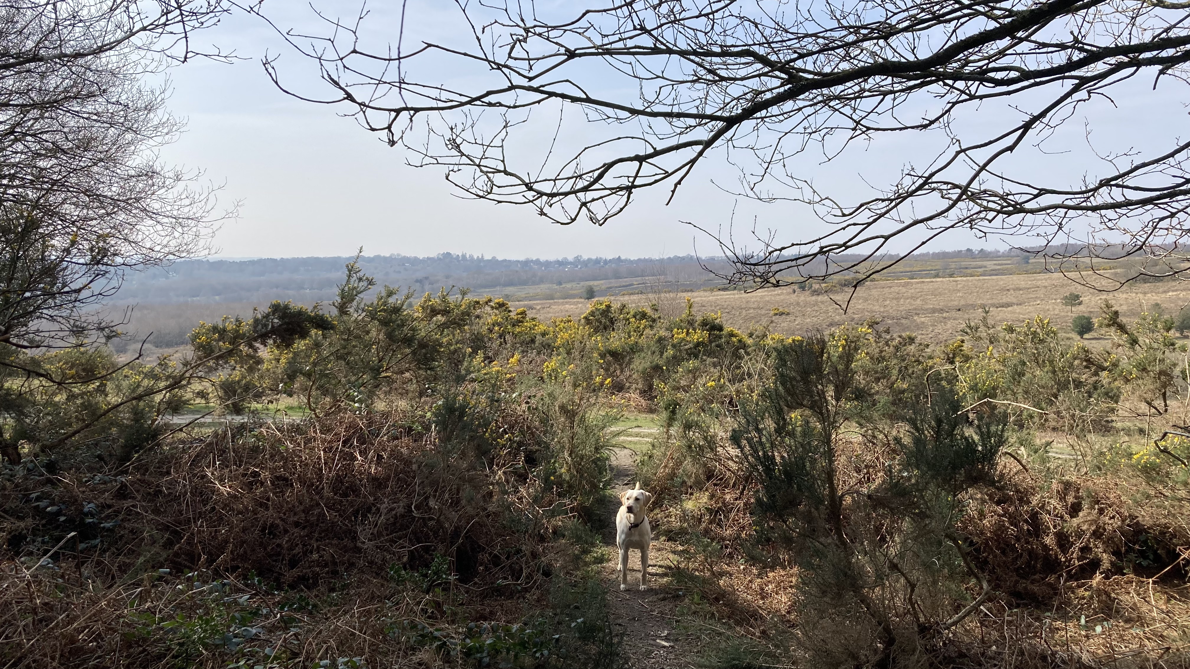 I was really sunny so I kept the dog close as it’s good adder country and I thought they might be basking in the bracken. I heard a Robin, and saw a Raven, and Chiffchaffs were chiffchaffing enthusiastically. I saw a fluttering bird and thought it was a Skylark, but the song was all wrong and I realised it was a Woodlark. It obligingly sat atop a lone holly giving me a a good chance to see its beautiful markings. There were a group of Coal Tits too, and I heard what was possibly a Goldcrest but I couldn’t be sure.