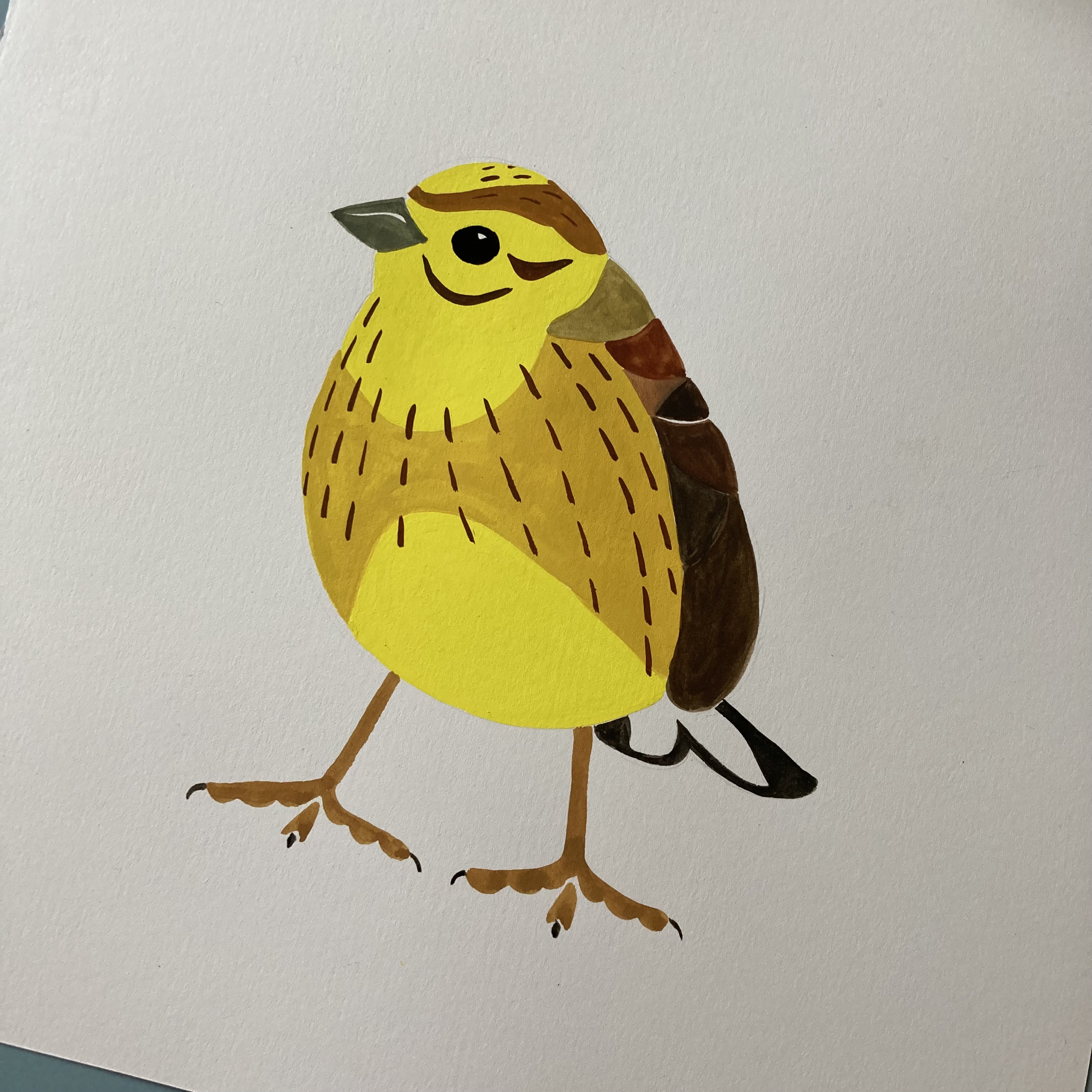 Yellowhammers are in Farm, Seven Sisters, and South Downs, so I thought I would do another version. I used a stock photo as well as some of my sketches of observed Yellowhammers (we have them here) for the final illustration.