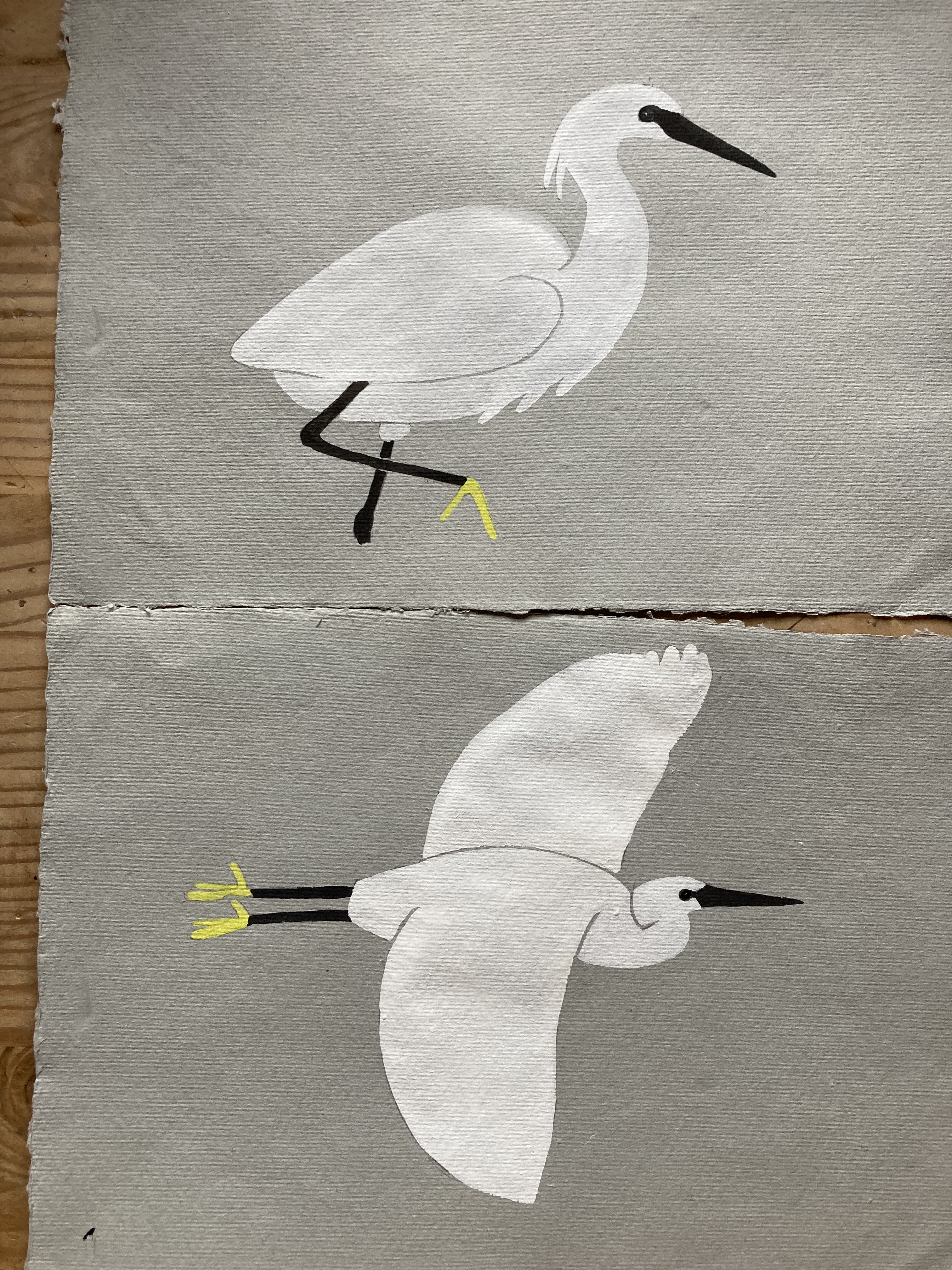 I have been catching up with some illustrations, and I have repainted the Little Egret I drew on to white paper as when I tried to Photoshop it, I couldn’t see the pencil lines on the scan! So, I have used my grey Khaki paper which I am hoping will work a little better. I perhaps should have tried it on one before painting a load, but that’s simply not my way of doing things so I will report back…