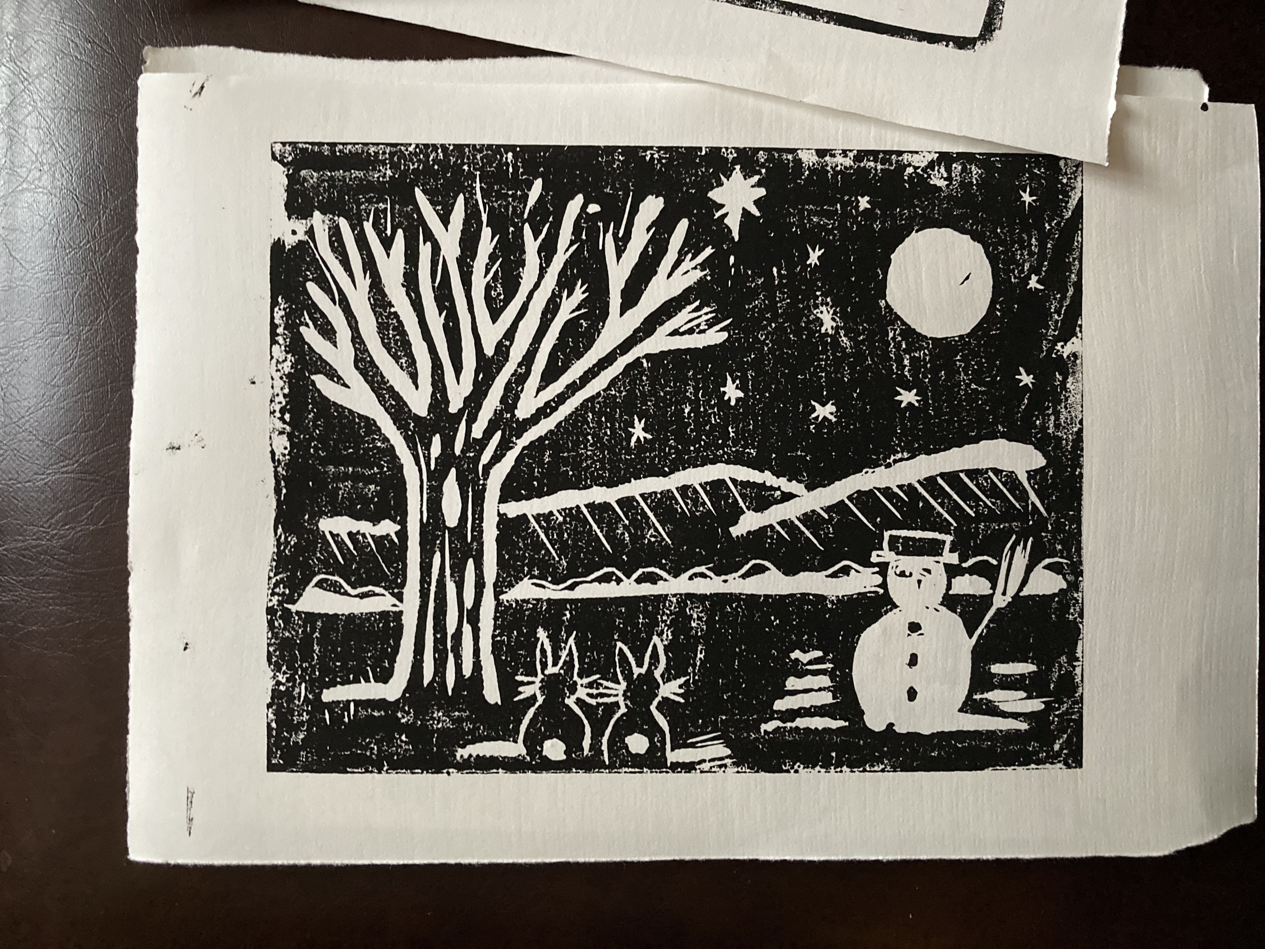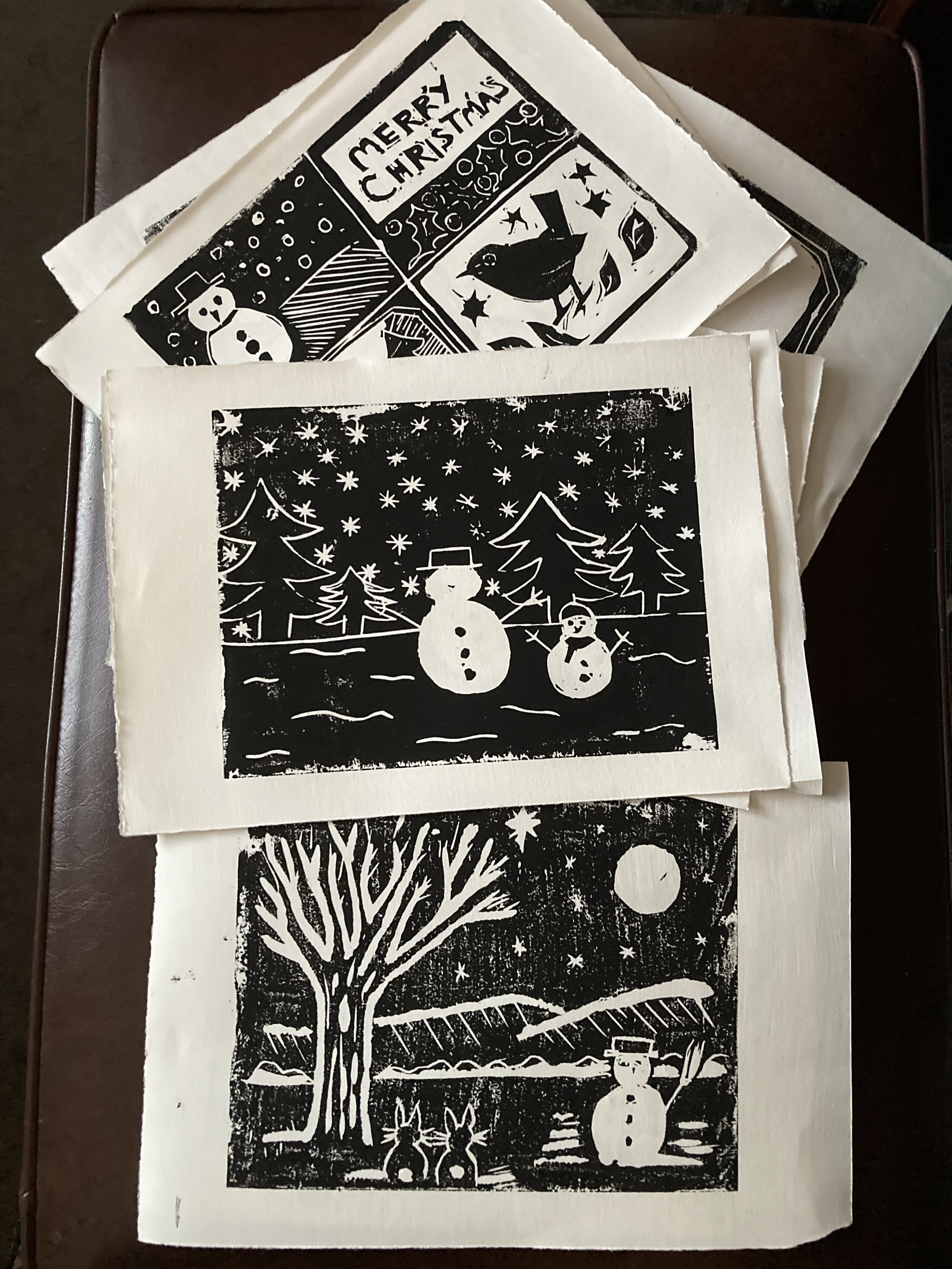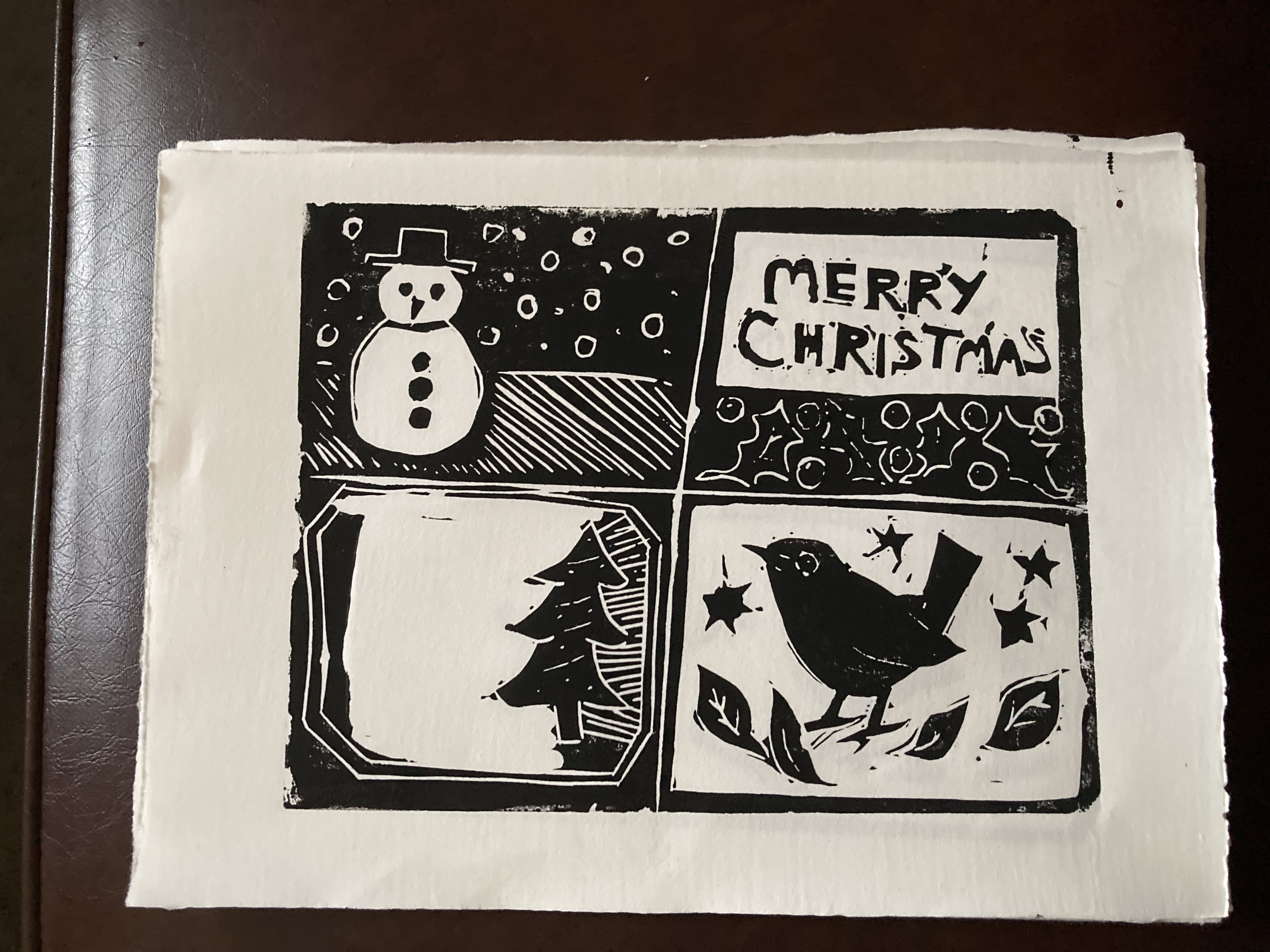 My linocut tag efforts coincided with my daughter coming to stay for her weekly overnight visit, and both she and my mum wanted to have a go at carving.