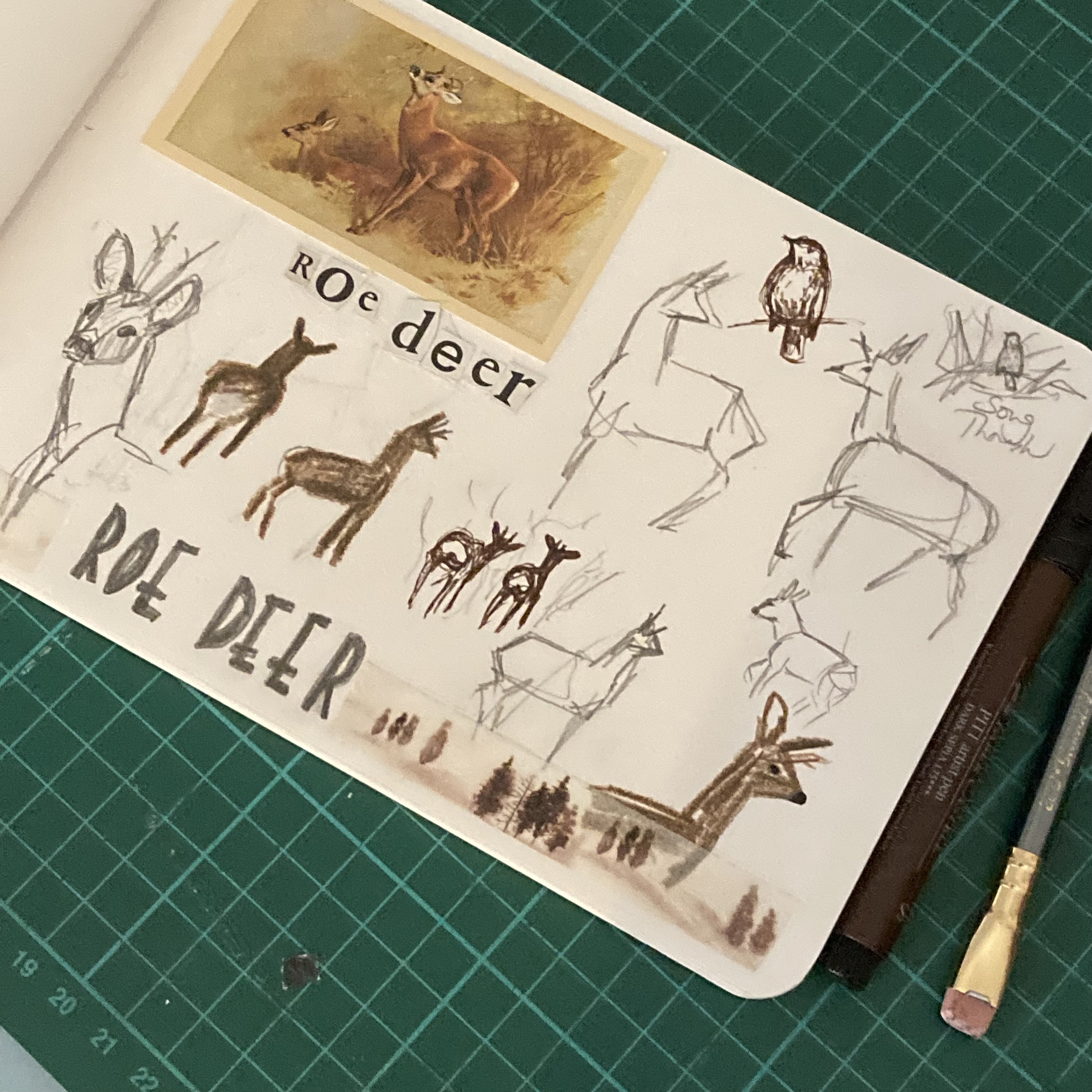 I was out with the dogs this morning when I spotted something lurking in the undergrowth: three roe deer were making their way along the scrubby edge of the path. They are so well camouflaged but their pale bottoms gave them away, and I watched as they made their way in to the field and watched me as I watched them, flanked by the dogs. A Song Thrush was singing in the branches above me, and was a lot easier to spot than the deer!