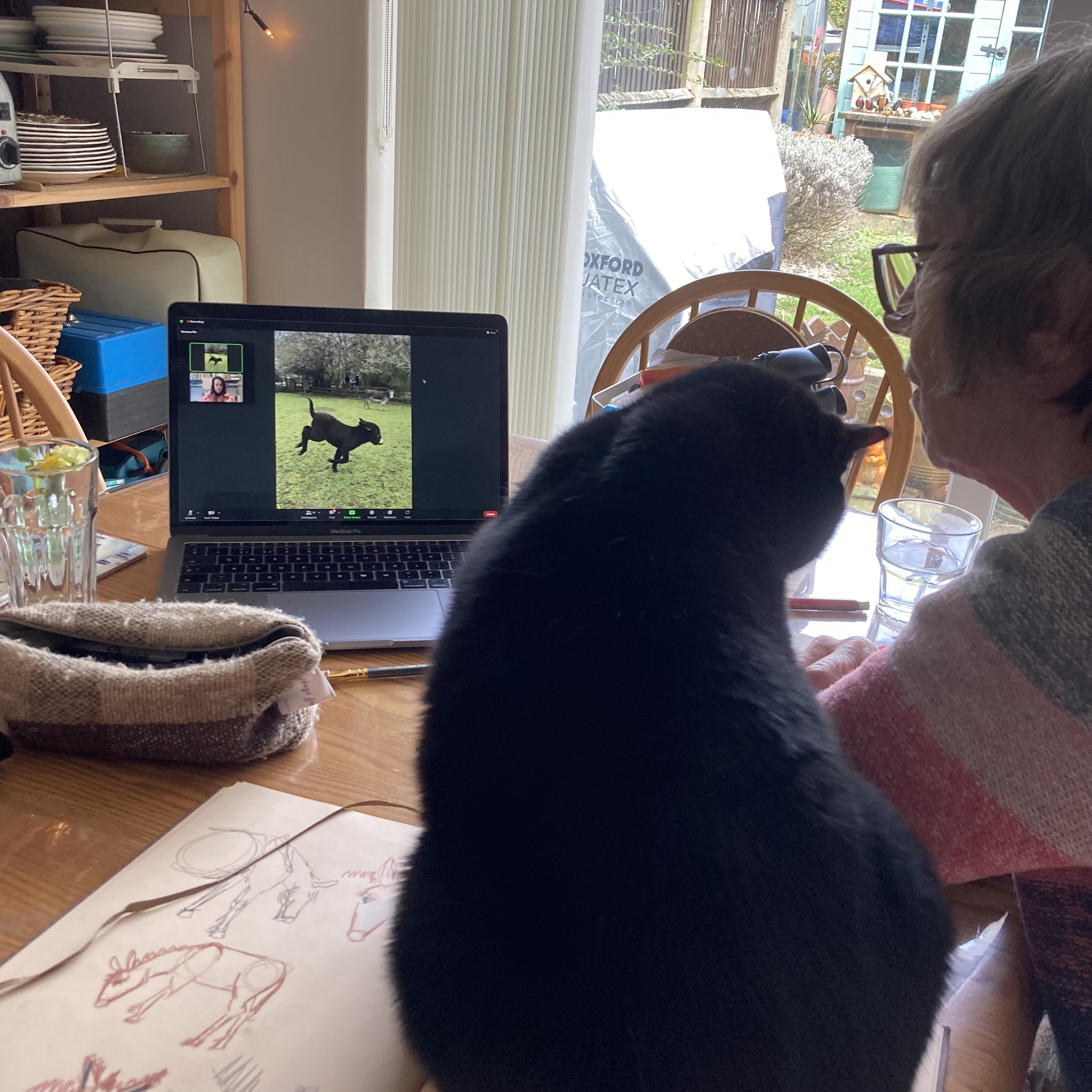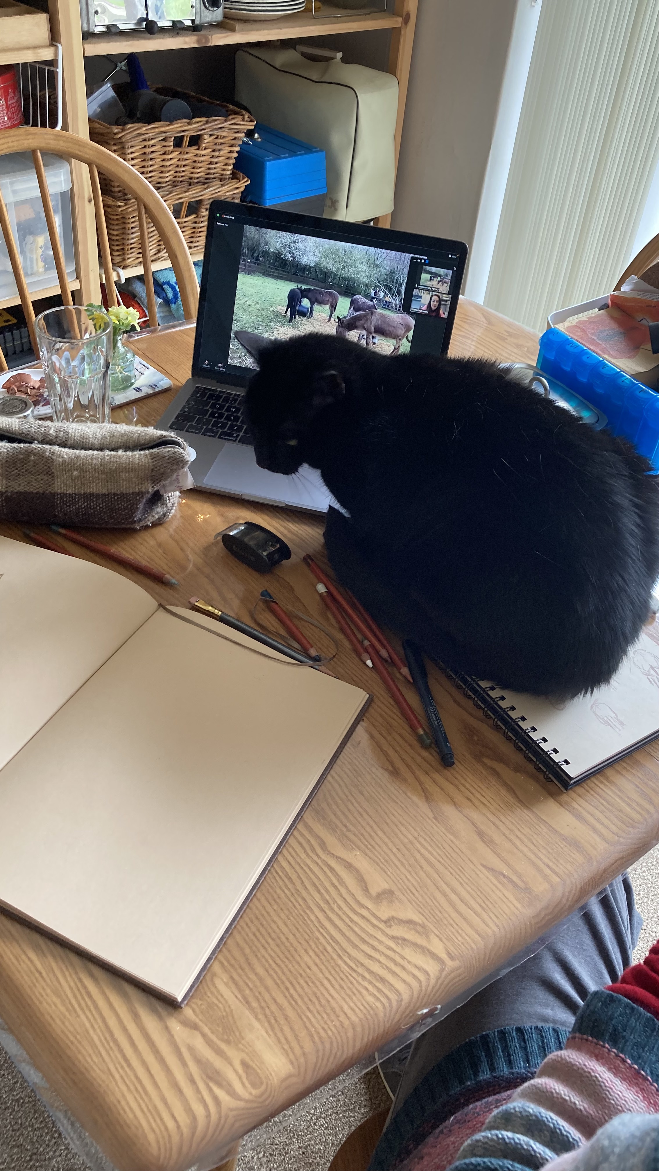 This Sunday I joined the Donkey and Foal Class, brought to us by Hackney City Farm. The hour-and-a-half consisted of an introduction to drawing the animals in question by the reassuring and talented Laura, then the cameras shift to the animals, and we can enjoy sketching from the screened hearing about the personalities, upkeep and background of the subjects. There are plenty of opportunities to switch cameras, take screenshots, and the session is recorded so if you miss bits or can’t make it after all, you can rewatch the event in your own time.
