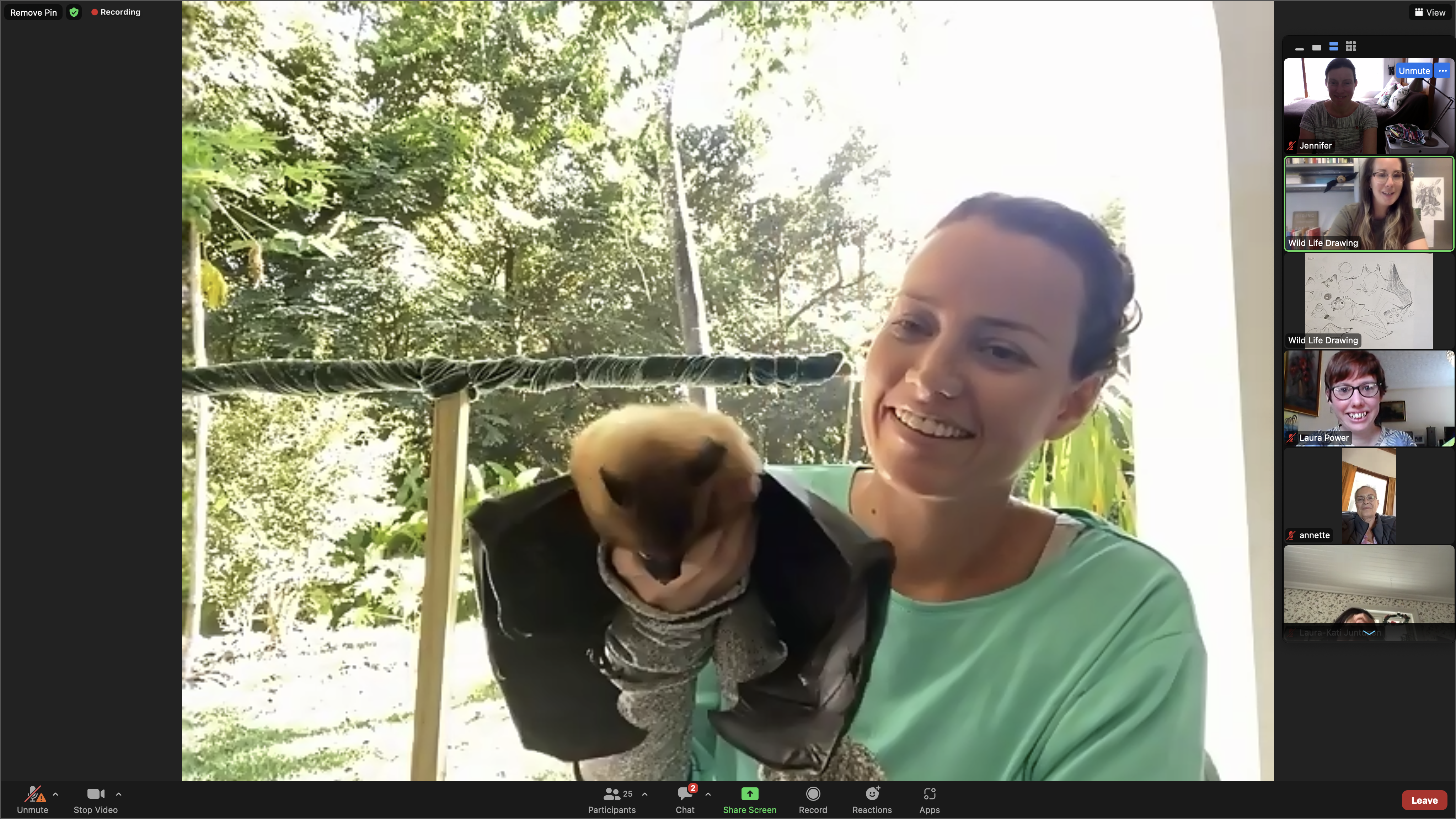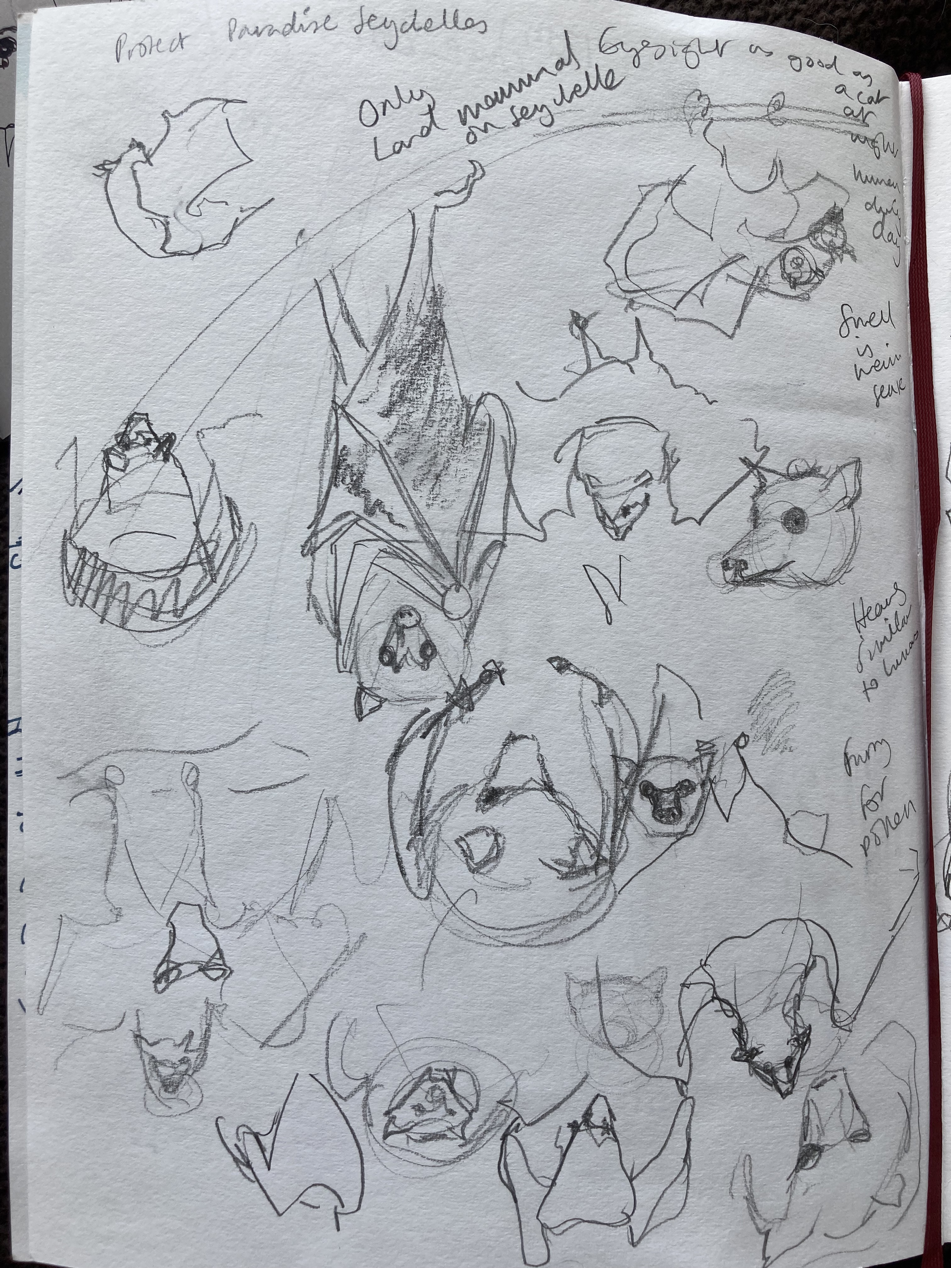 This was another session with the wonderful Wild Life Drawing where thanks to the wonders of Zoom, we enjoyed a great view of some gorgeous Seychelles fruit bats from Protect Paradise handled expertly by co-founder Tamara.