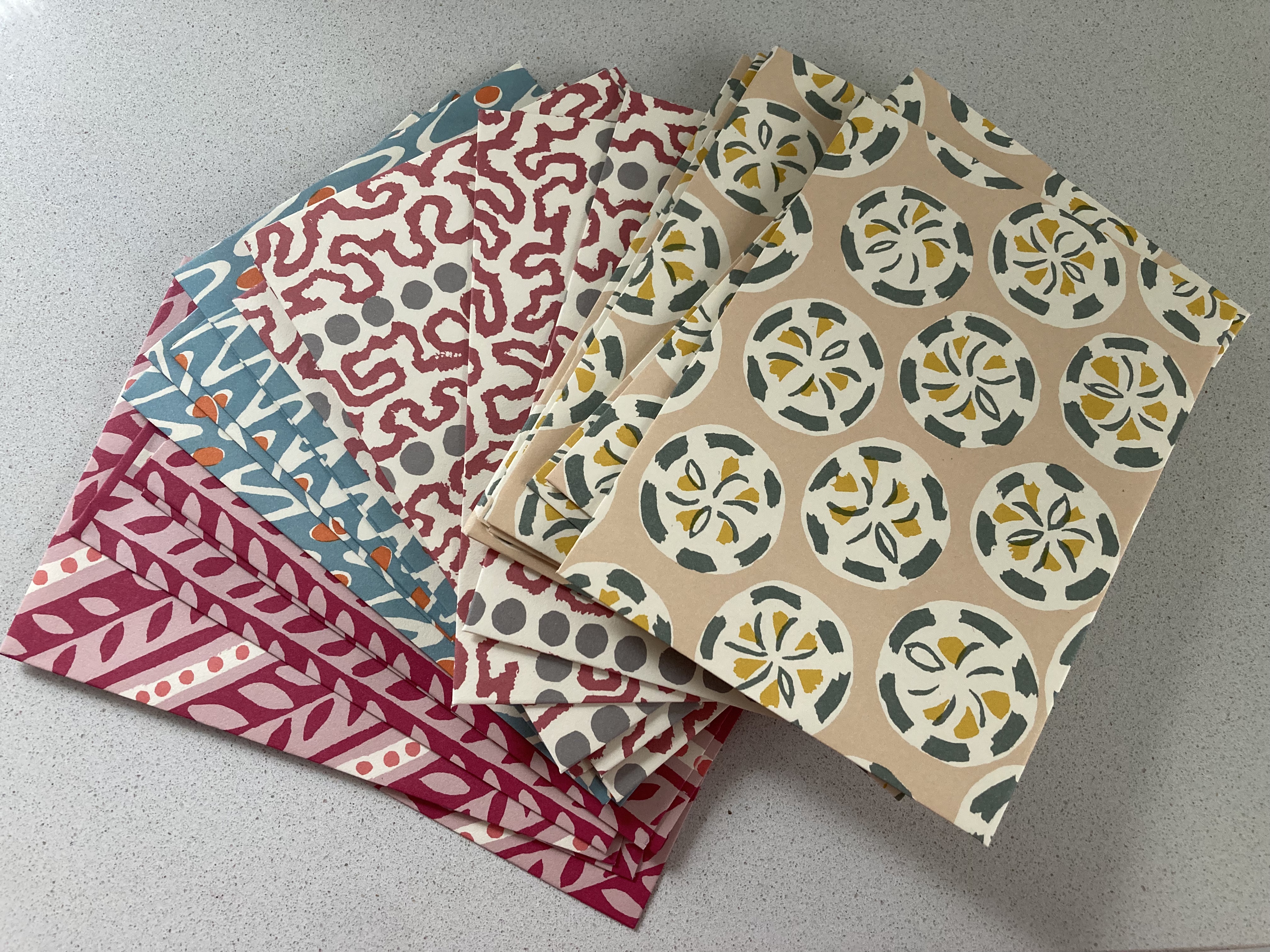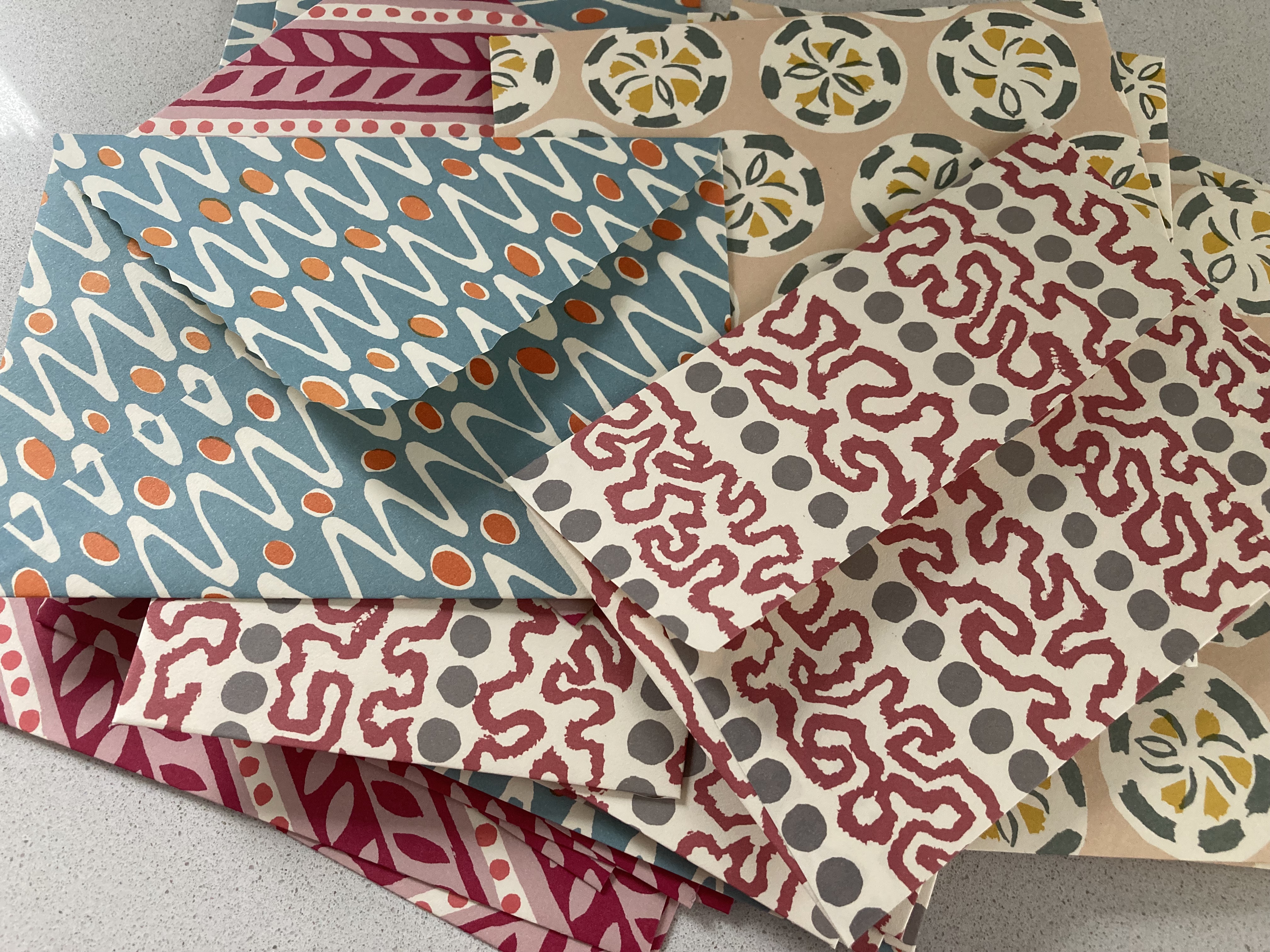 Like the logbooks, the Cambridge Imprint paper is FSC with vegetable-based inks, and these Charleston envelopes makes any one of my Sussex titles even more special. They are also available to buy as a pack of 5. There are two styles and the patterns vary as they are handmade.