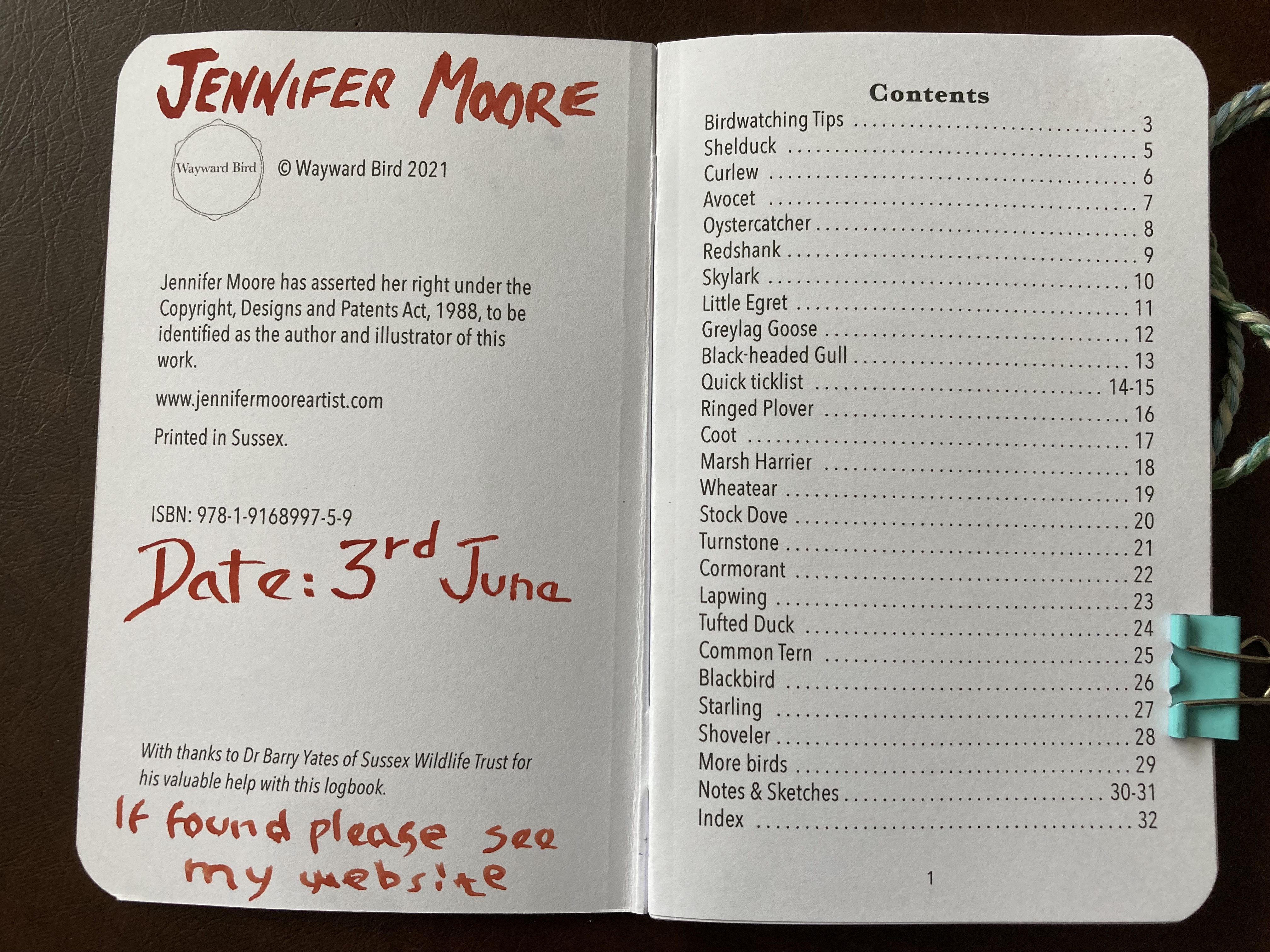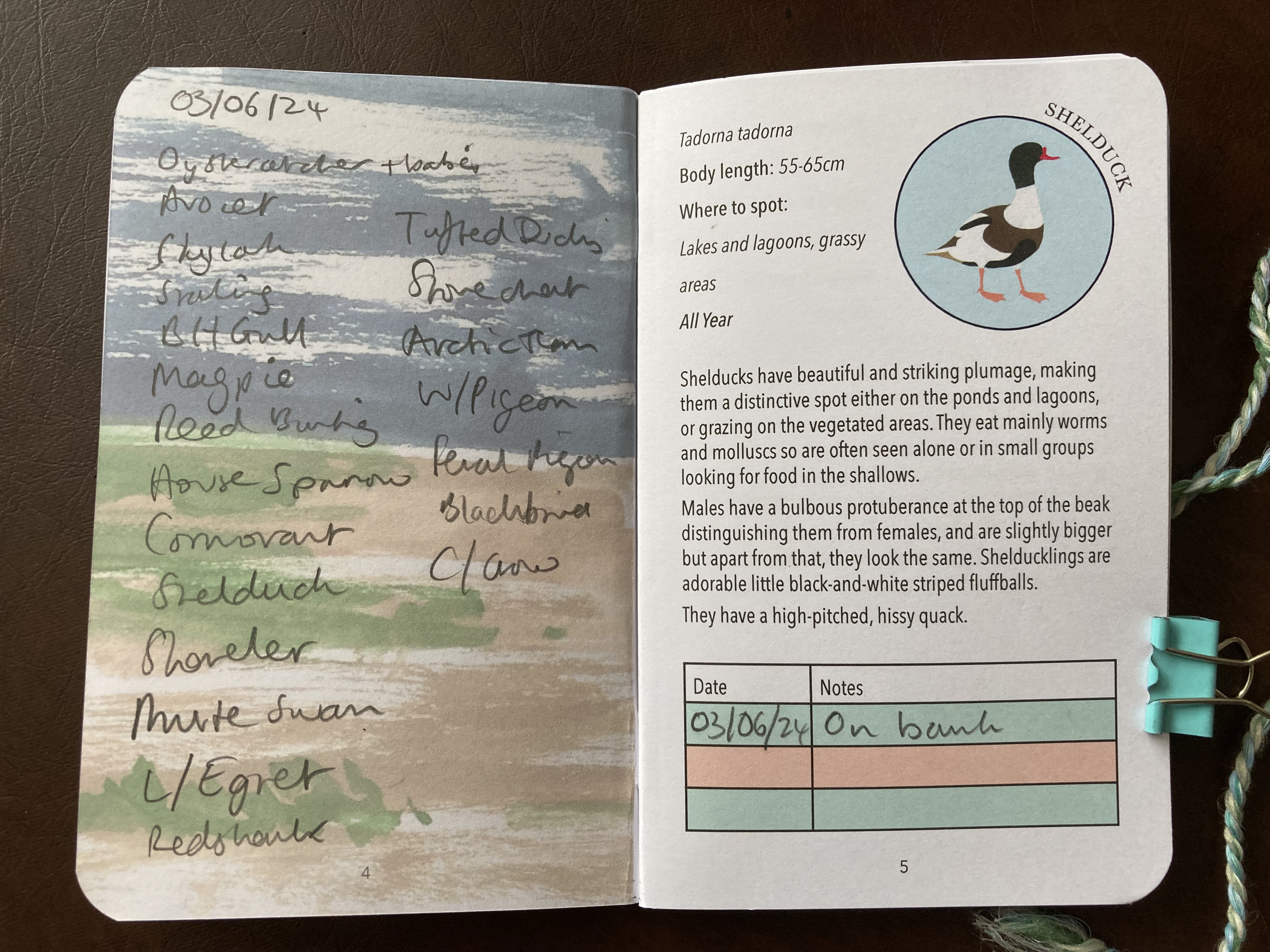Here is my logbook, ready to take out again when I next visit, and given that the logbooks are so inexpensive, that gives a fabulous record of a day out birdwatching with my son for less than the price of a coffee!