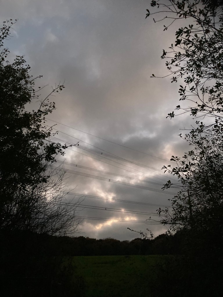 I was starting to think I should perhaps put on a podcast or something so I had a reassuring voice in the fading light, and then I saw a flourescent green light with a bright light above – no, not an alien abduction – and there was a man with a torch, and his dog (who I recognised) decked out in a luminous collar. “Hello!” I said cheerily, and allowed my shoulders to subside a few inches to a more usual level.