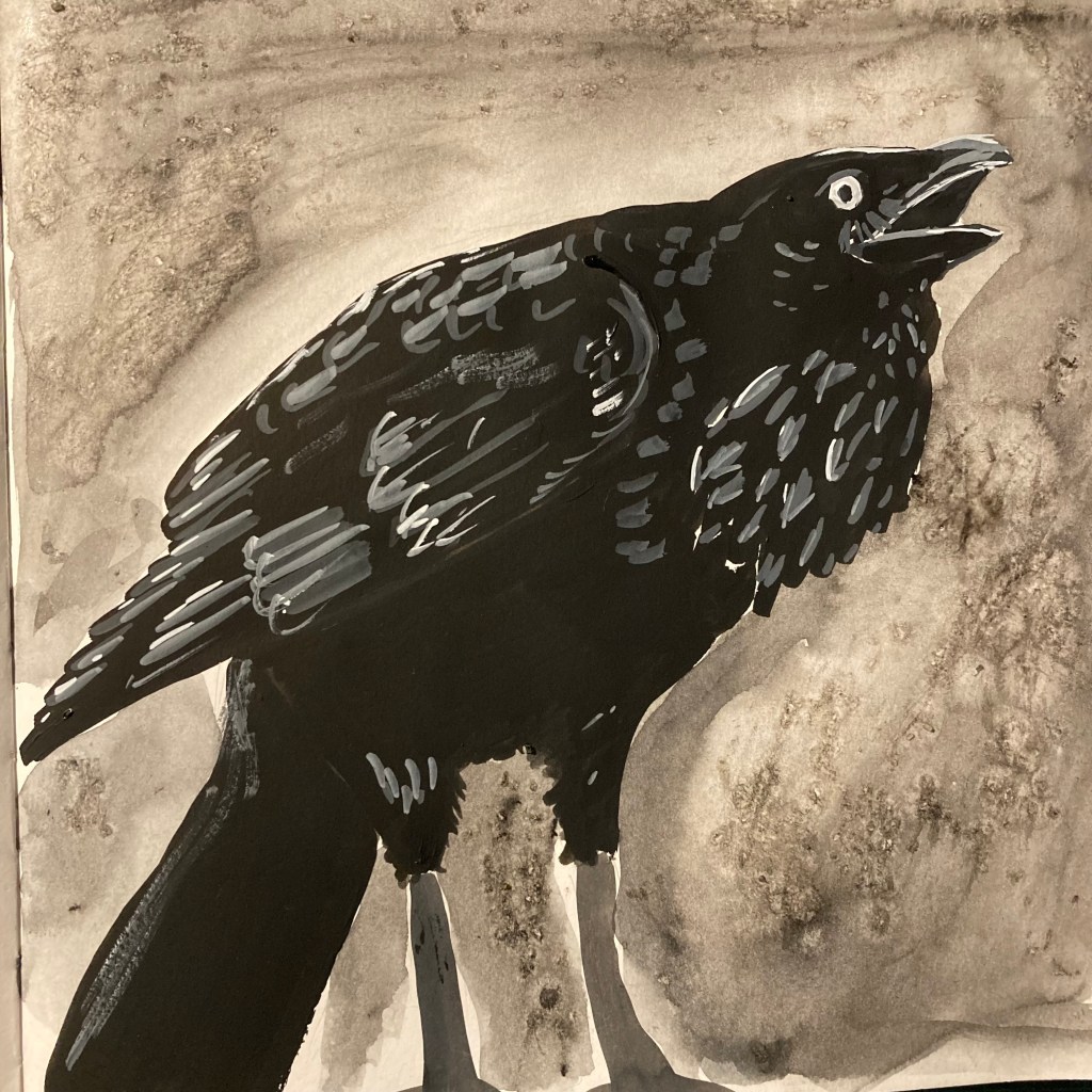 I took my dog on his usual walk this evening, and heard the Ravens high up on the pylon where they have called home for the past two years.