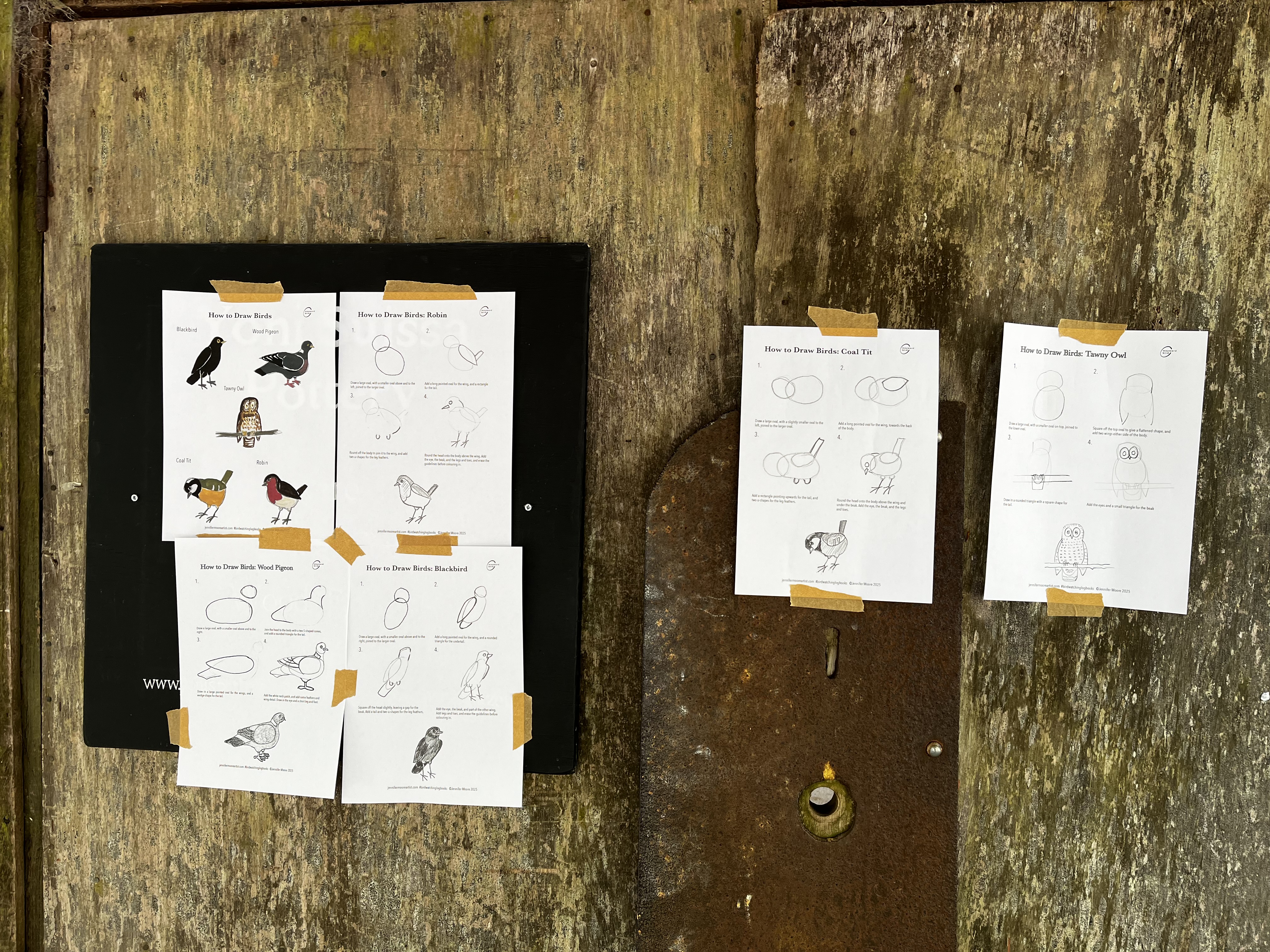 I ran a successful woodland-bird-drawing workshop yesterday at Wilderness Wood, and the birdwatching logbooks went down well with the visitors to the Wood Fayre. I really enjoy making the How to Draw worksheets, and in spite of the wind trying to rearrange the workshop periodically, it was great to see everyone’s drawings. The Robin and the Tawny Owl got all the love but having the Coal Tit, Wood Pigeon and Blackbird on offer at least showed willing.