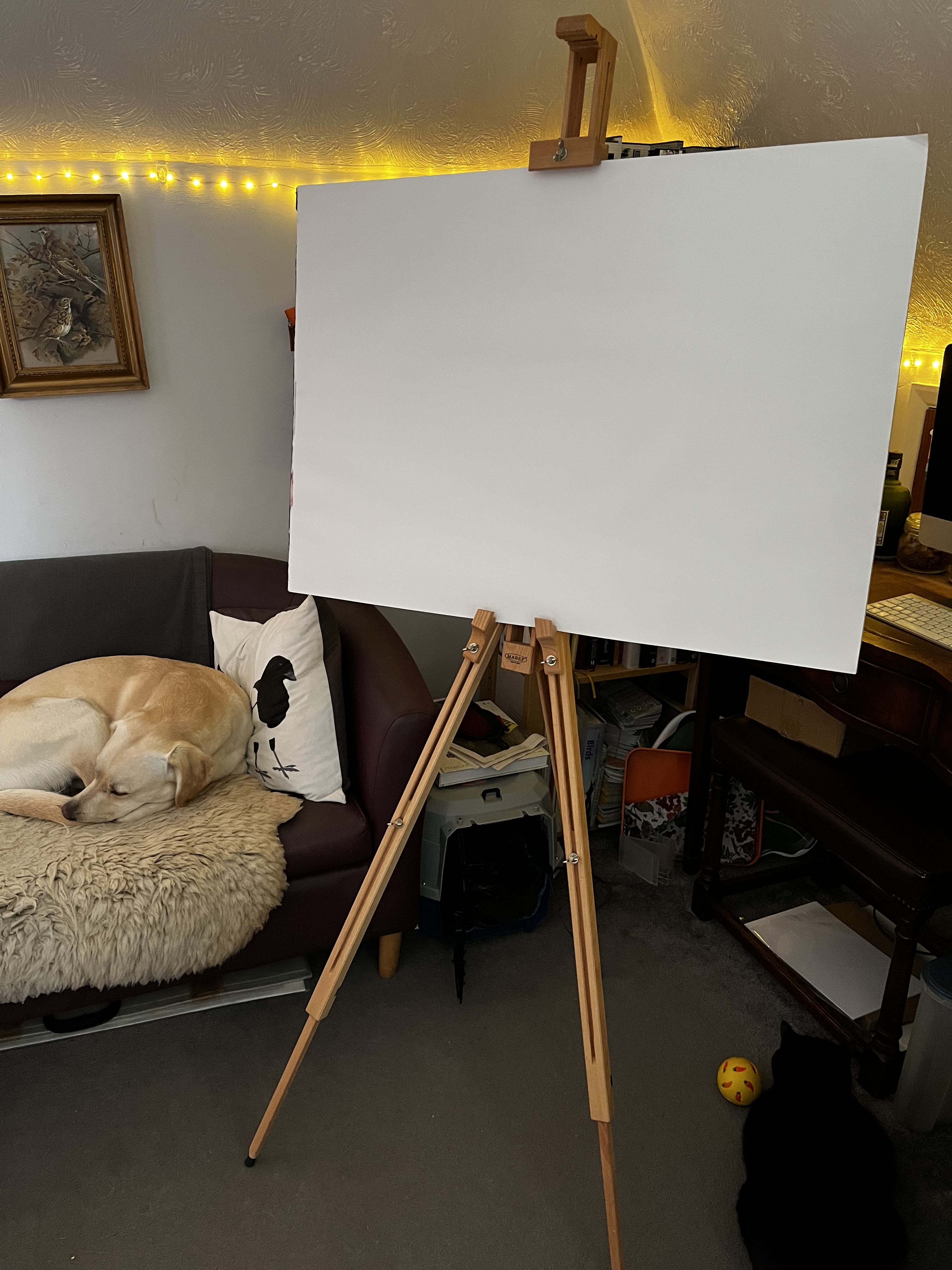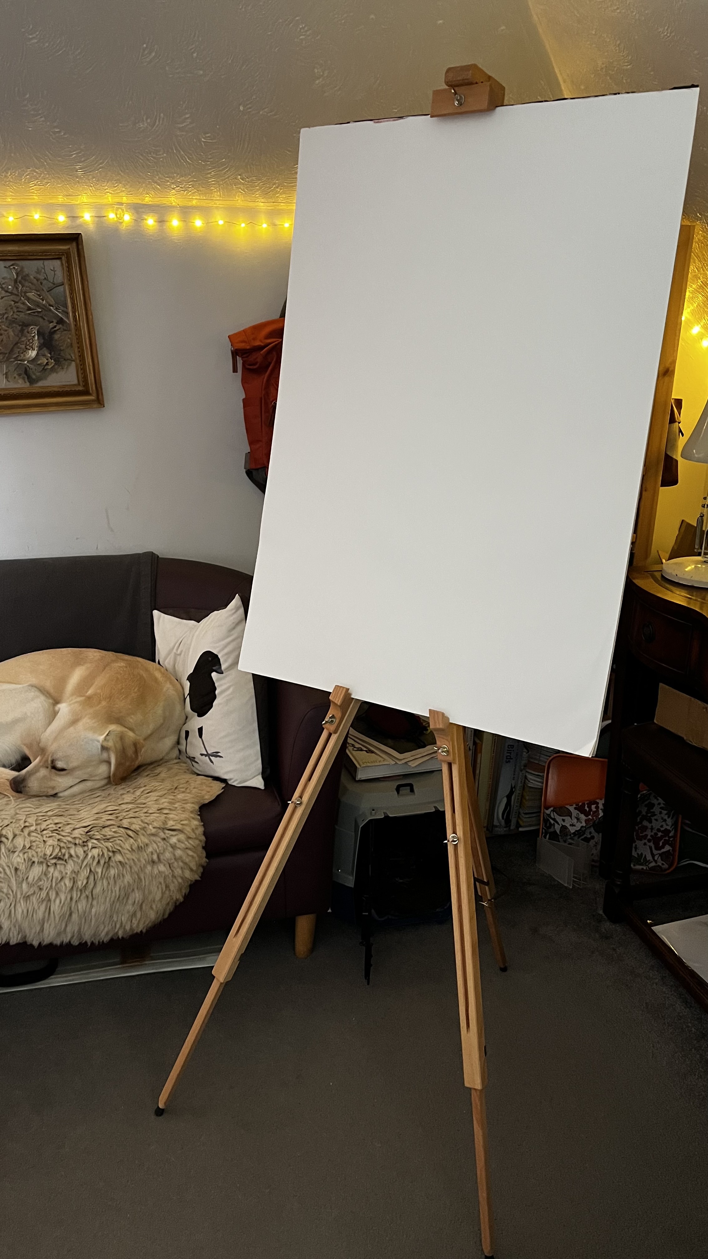 One thing I have committed to explore is working at a much bigger scale, but much as I love my cosy and delightful attic room, I realised I simply don’t have the room to spread out. So, I now have an easel which I can use for my A1 sketchpad.