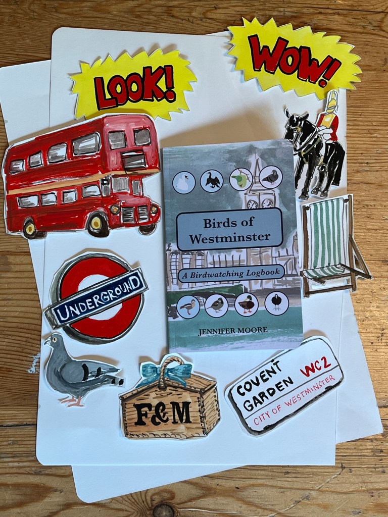 I have painted a few Westminster-ish motifs and it has been soooo much fun. Honestly. I now need to think about how to put them together, and I need to do a few more perhaps (although right now I can’t think what would be sufficiently birdwatching-y and specifically Westminster-ish) but I have really enjoyed it. I can’t wait to do more for the other titles…ice creams and sandcastles for Coast & Clifftop Birds…flasks and walking boots for Birds of the North West Highlands…canal boats and bulrushes for Pond & River Birds…