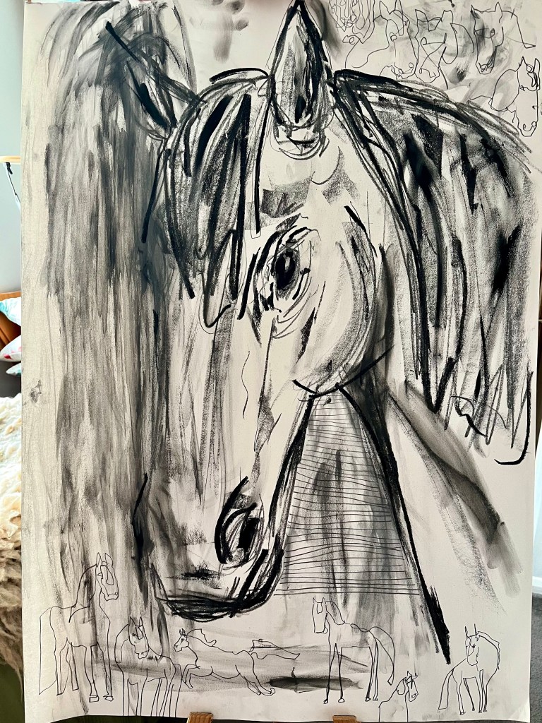 I have been watching Fake or Fortune on BBC iPlayer as some of the artists were either associated with, or around the same time as, the Bloomsbury group, and it’s interesting to hear about some of the backgrounds and lives of these peripheral people. One was about Henri de Toulouse-Lautrec and his sketchbooks, and horses remained a common theme throughout his childhood. I find horses difficult to draw, possibly because I know them well, and spent a long time wishing I could draw beautiful renditions when I was younger. I think this means I can’t lean into my own style in the same way I can with something less personally important, like a giraffe or toucan.