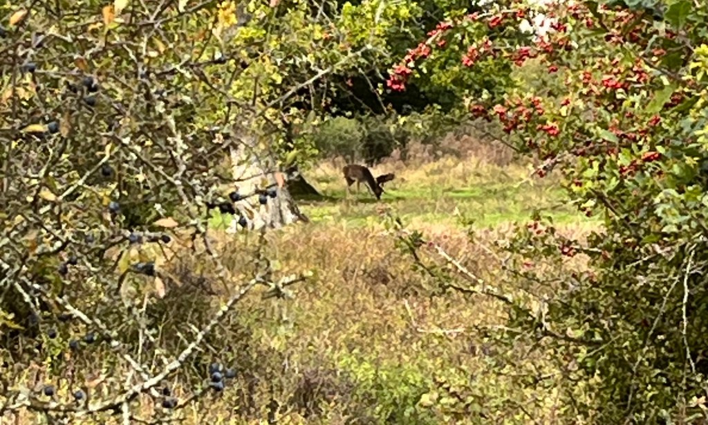 We also saw a fallow buck with enormous antlers grazing quietly, feeding up before the exertions of the rut. The hedges were laden with berries, and acorns crunched underfoot. I find this abundance so comforting…perhaps there’s something primeval in us which views a heavy crop of autumn fruits as something reassuring, and certainly in this atmosphere of loss and negativity, the proof that nature has the wherewithal to cope when given the opportunity is lovely to see. Hopefully the resident and visiting wildlife will enjoy a well-resourced winter, leading to a strong start to next year’s breeding season.