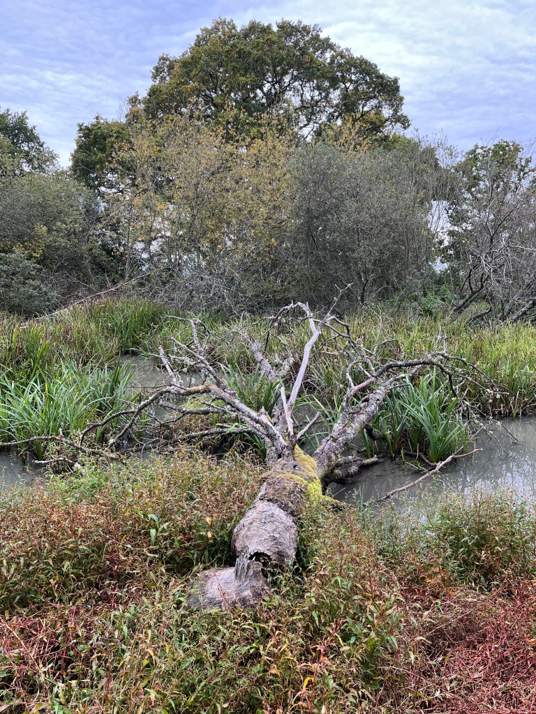 The beaver pen is 2 acres in size, and there’s an other-worldly feel to it, being quiet and still, with shallow pools and fallen trees dotted throughout. Teal love it, and as we skirted the edge by the fence, a few of these tiny ducks shot straight up out of the reeds in their inimitable style. Beavers are nocturnal so they were cosy and warm in their lodge while we looked around the magical landscape they’ve created. During the summer, there were some escapees and although the holes in the perimeter have been mended, there still seems to be damming activity on streams across other parts of the estate…