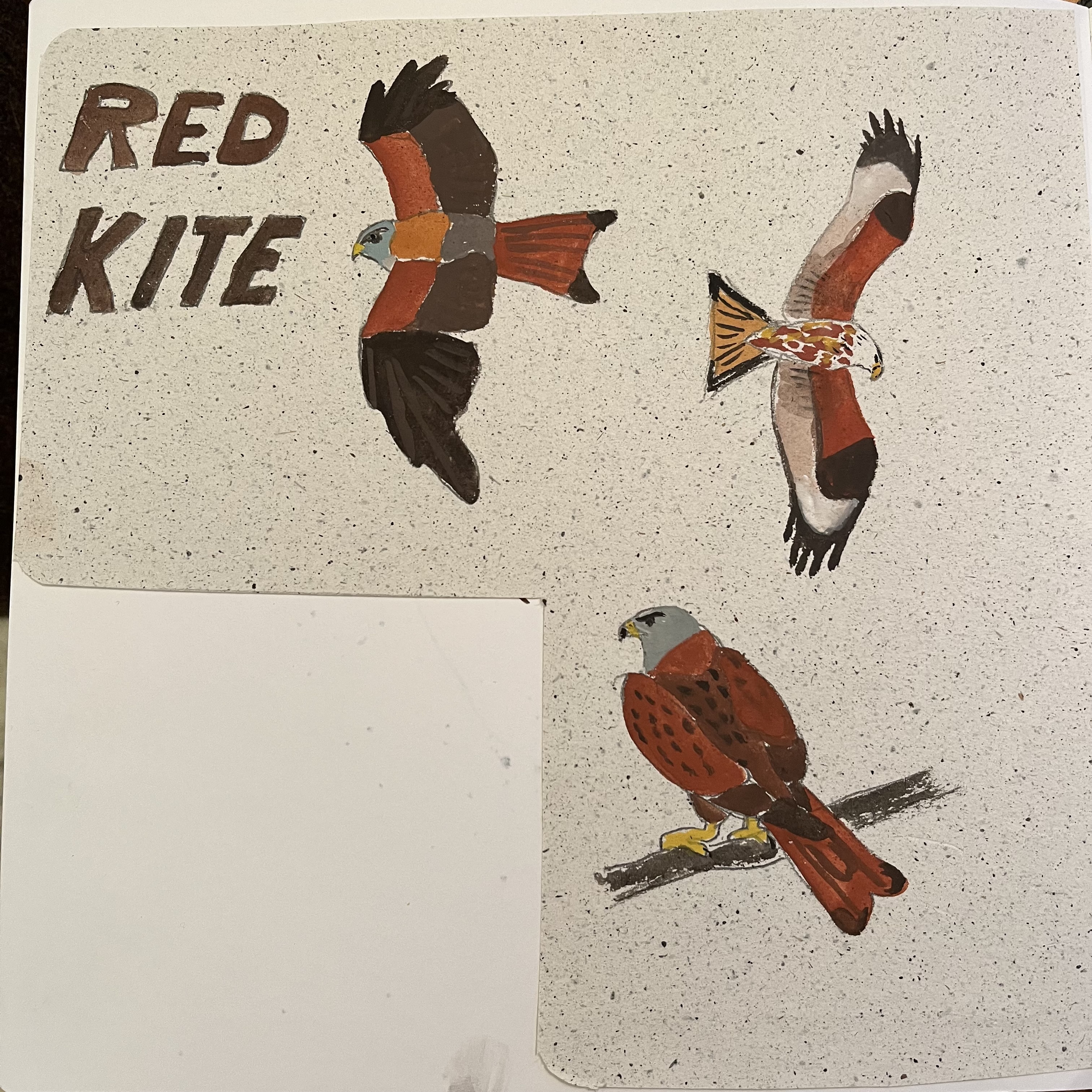 The Red Kite is on a page covered with elephant dung paper (yes really) as I used some ink on the page which bled through.