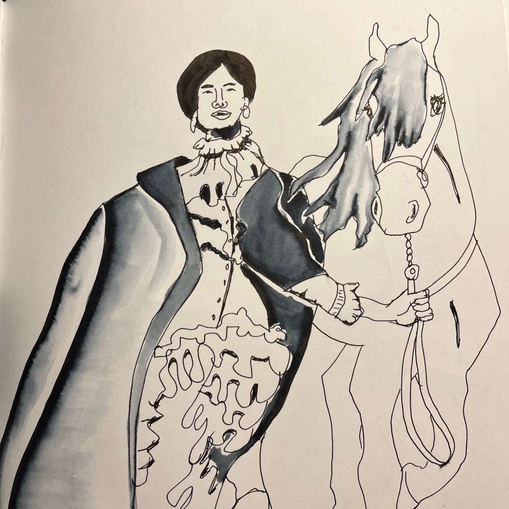 I need to catch up a bit tomorrow as I’ve got a few more Tawny Owls to draw from yesterday, and a Marsh Harrier from today. Inktober has been tricky as my mind goes totally blank when faced with the prompt, but I have done some other inky drawings from a photo shoot with horses in Condé Nast mag: